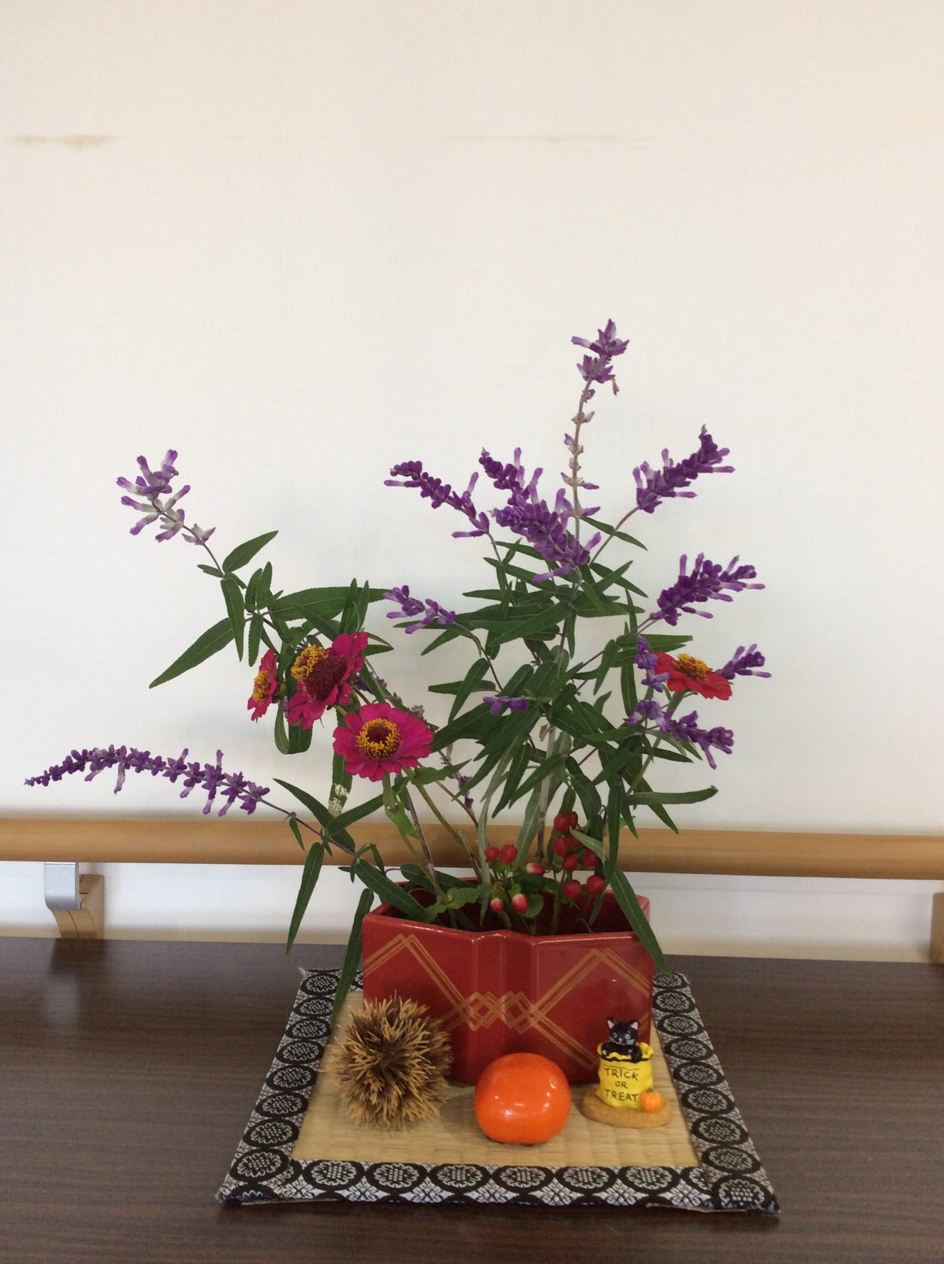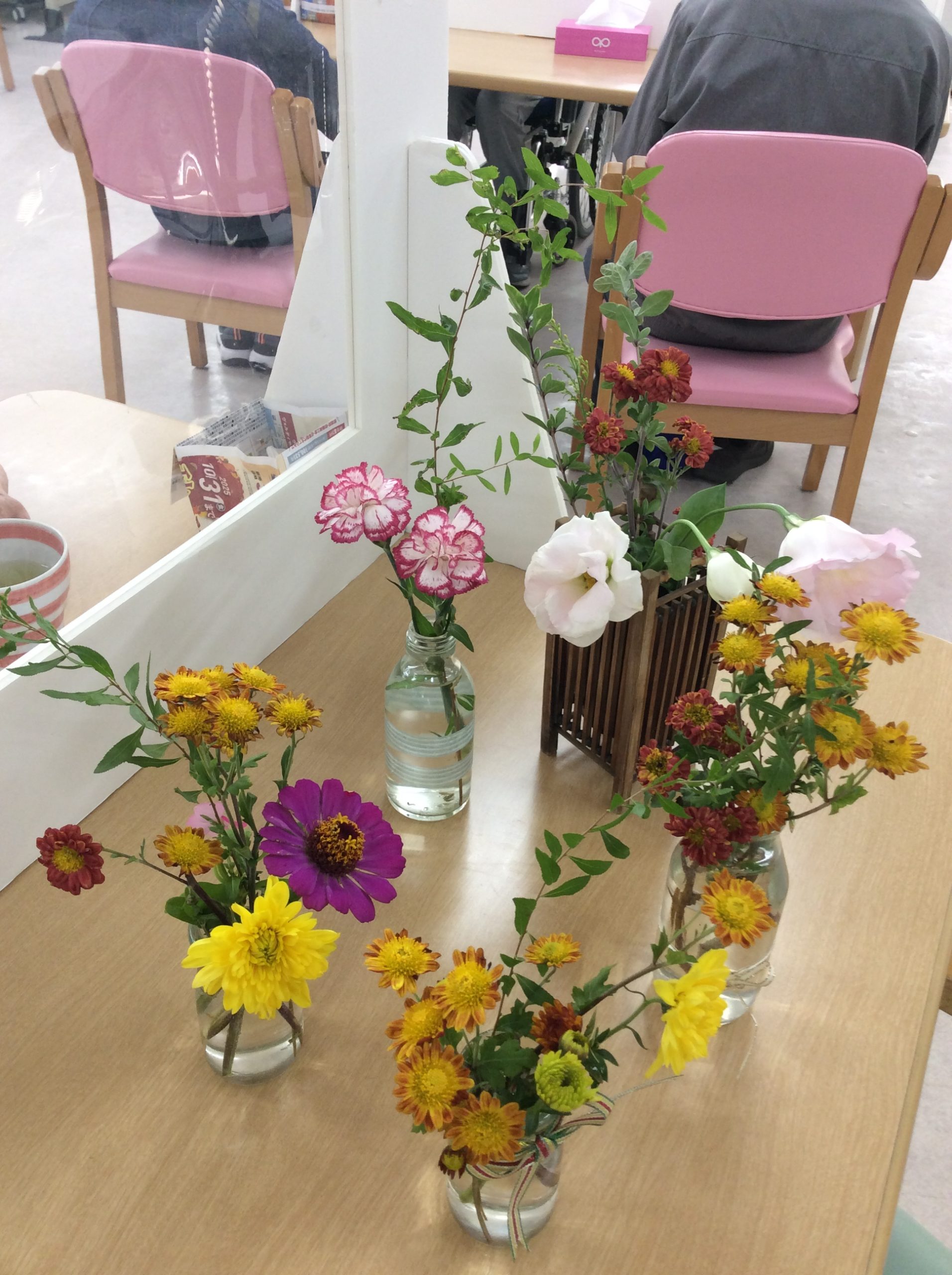 デイケアでは年間、ご利用者様から季節の花を頂くことが多く、その都度生け花やフラワーアレンジメントの活動を行ってきました。
