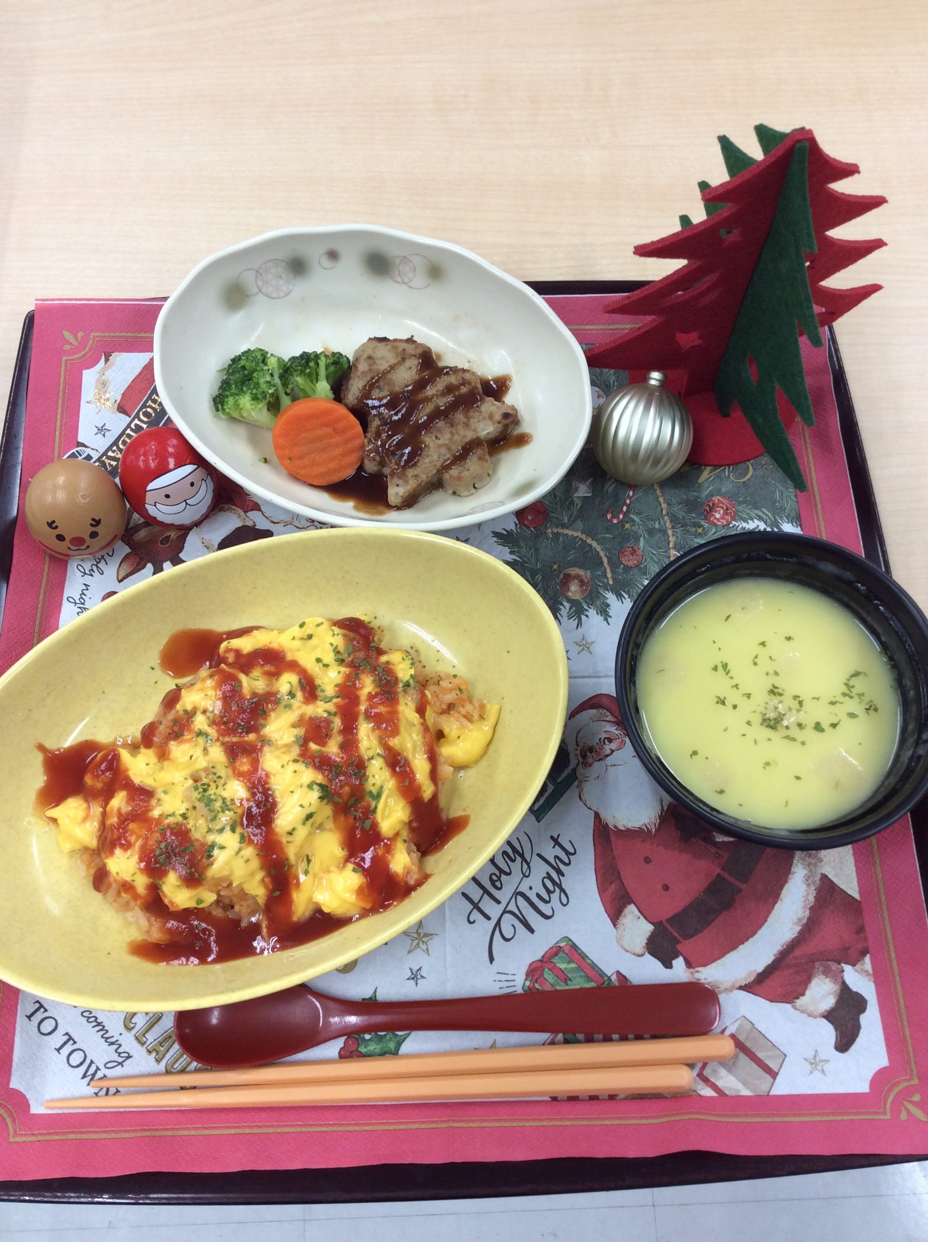 この日の昼食と午後のおやつはクリスマス・メニューをご用意いたしました♪