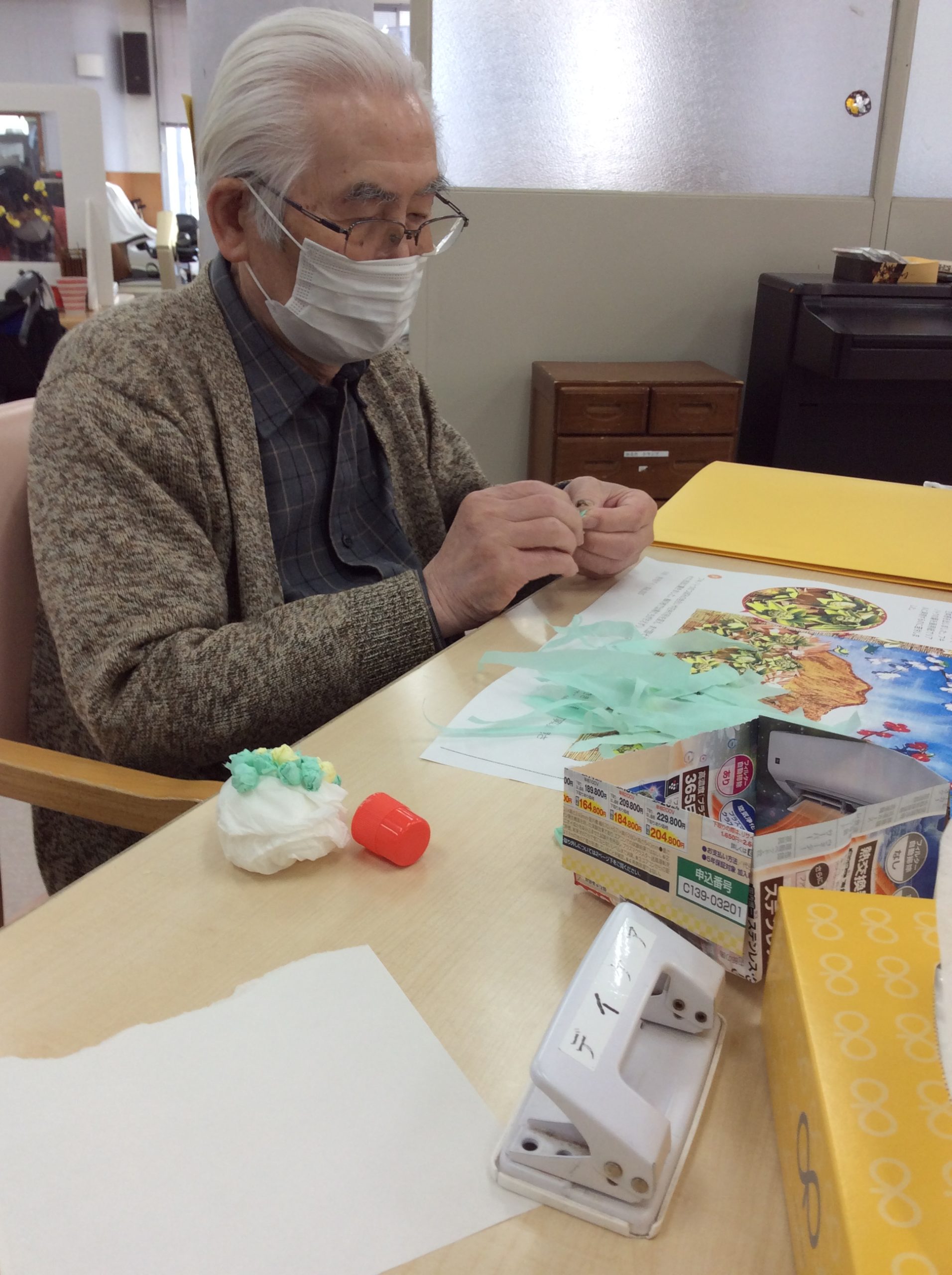 そんな中、デイケアでは春作品✨を創作中!!