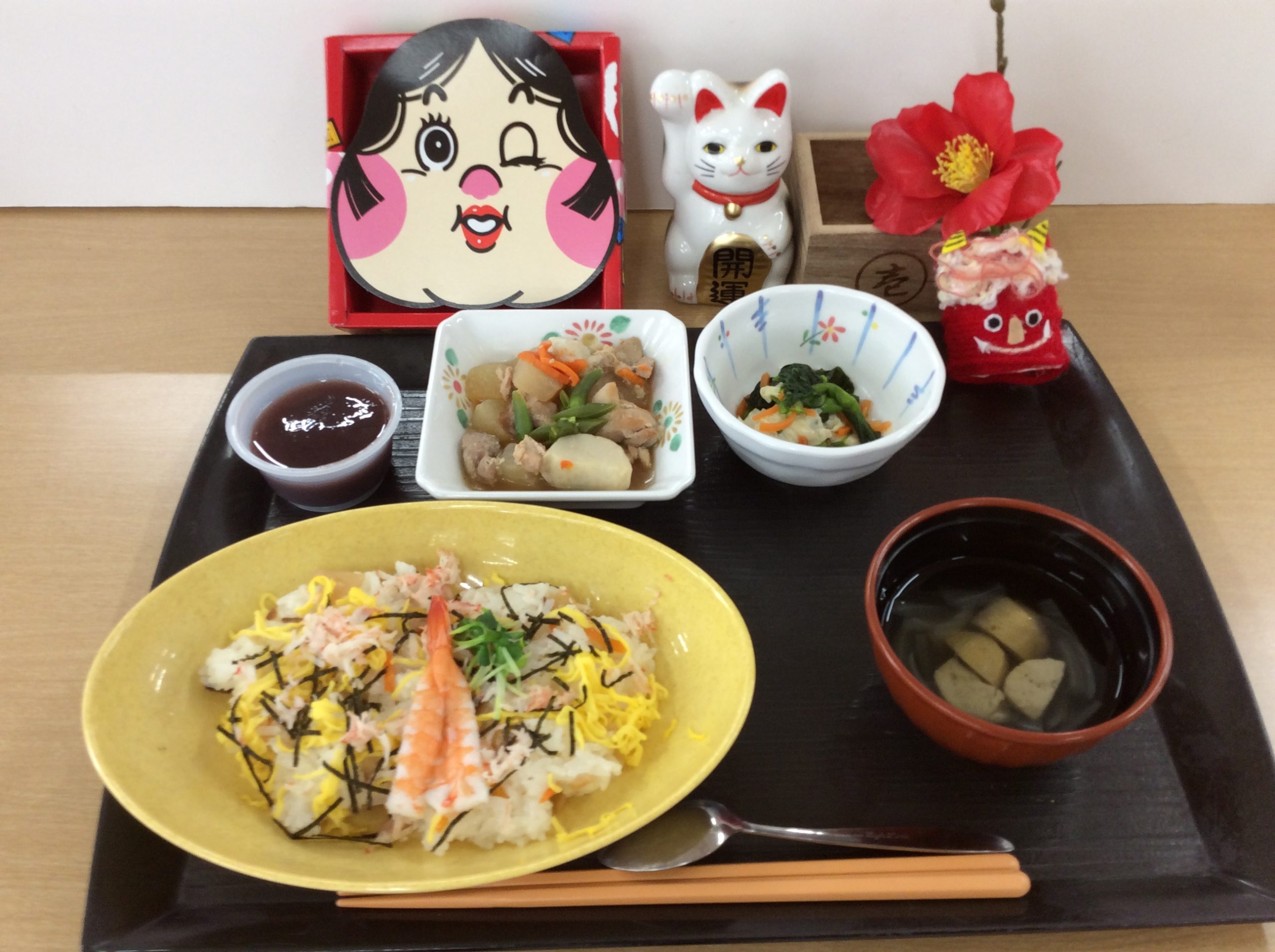 この日さんさんケアセンターでは季節の行事にちなんだイベント食が振る舞われました。