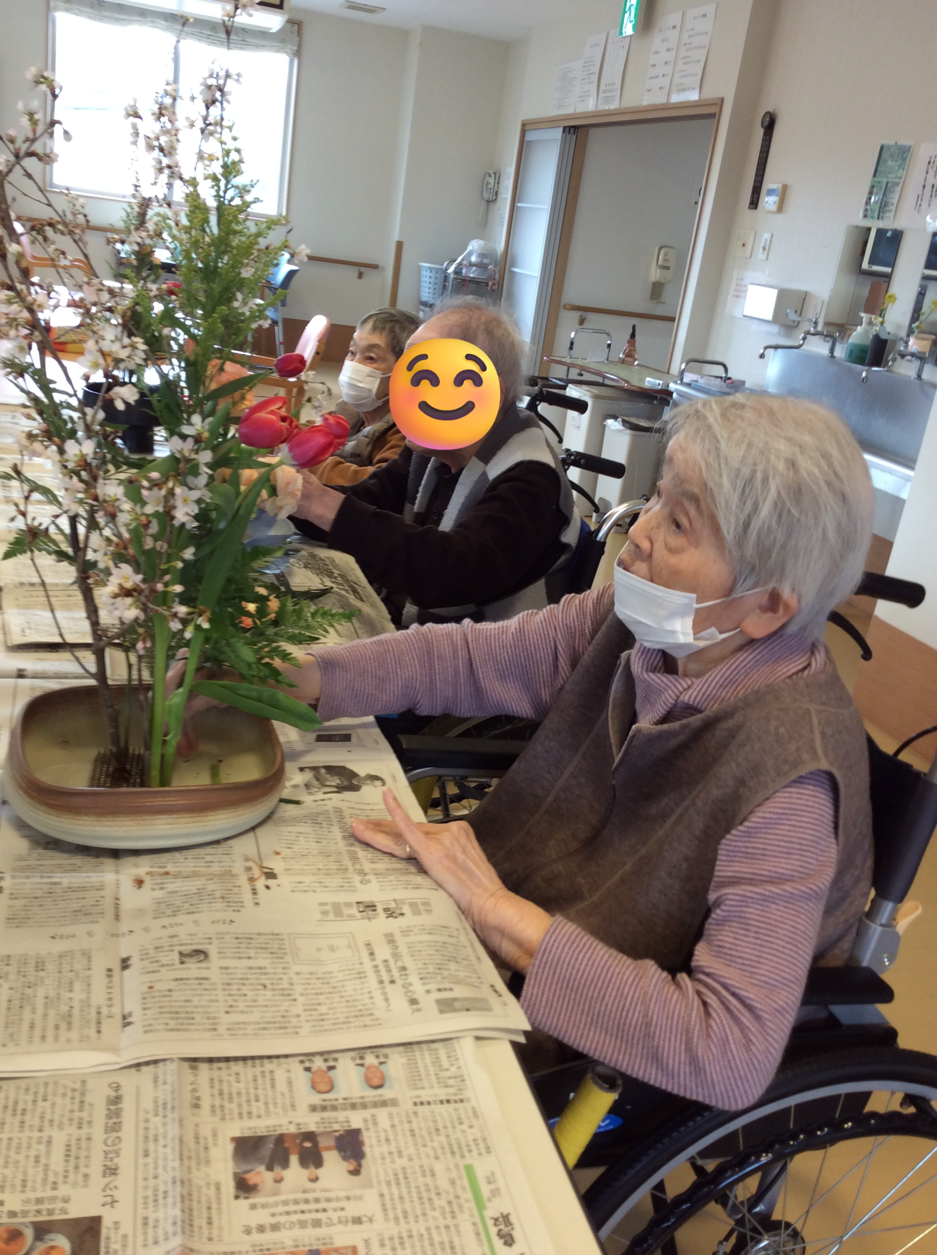 先日、入所で生花サークルを開催し、入所者様と職員で季節の生花を楽しみました\(*^-^*)/