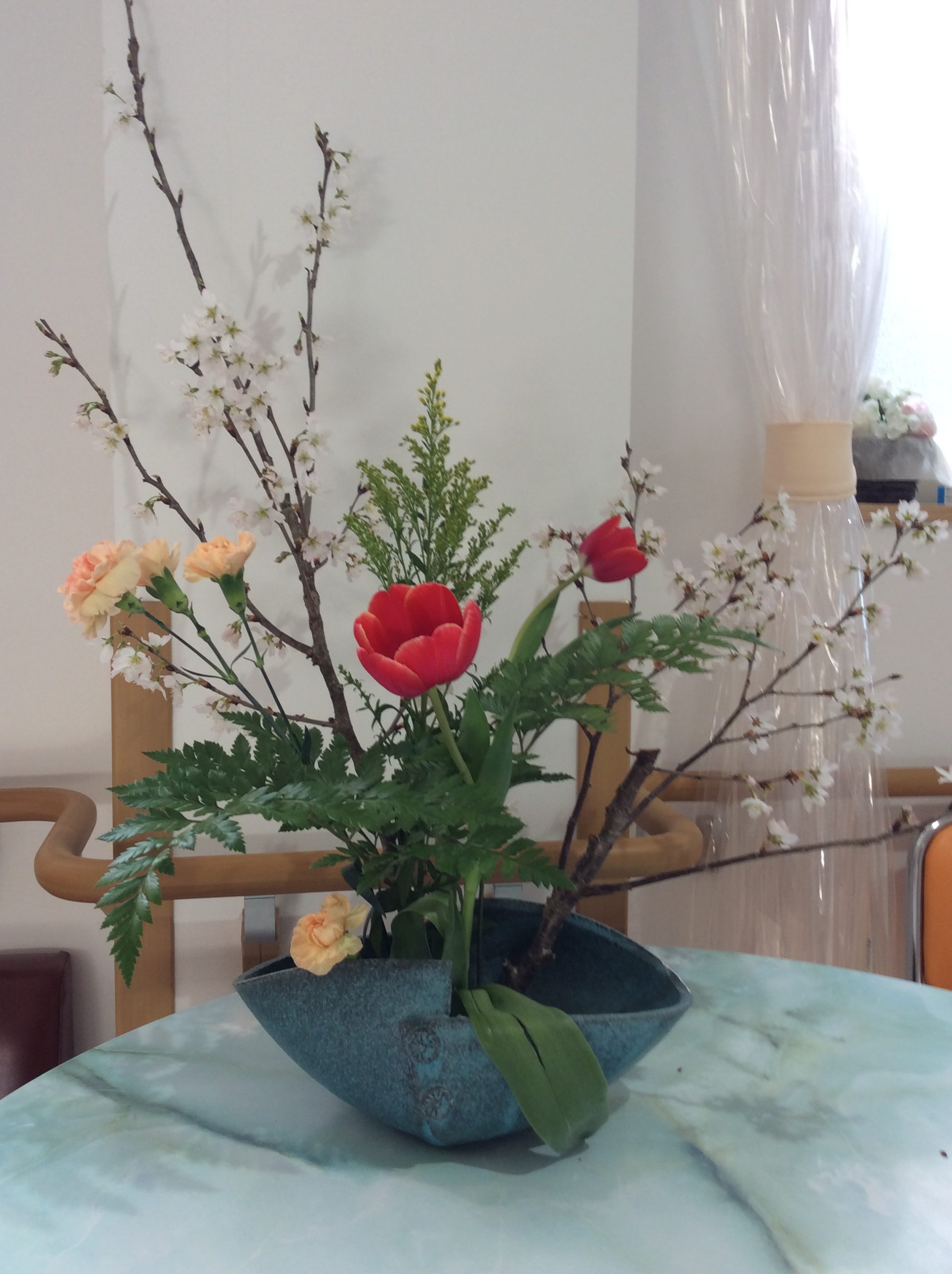 この日用意した花は、桜🌸チューリップ🌷オレンジ色のカーネーションです。